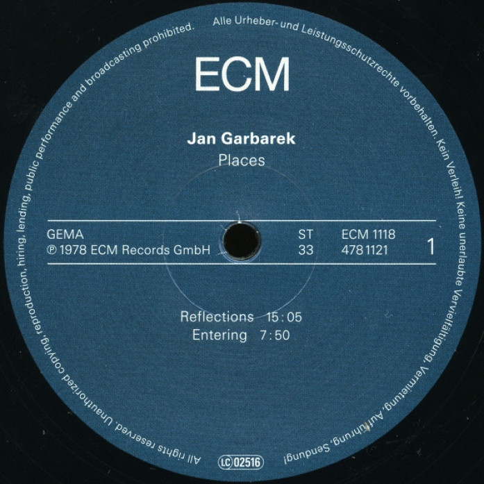 Etichete: Jan, Garbarek, Places, Vinyl, LP, Album, Reissue, 180g, 2017, ECM, Records, , ECM, Records, Jazz,