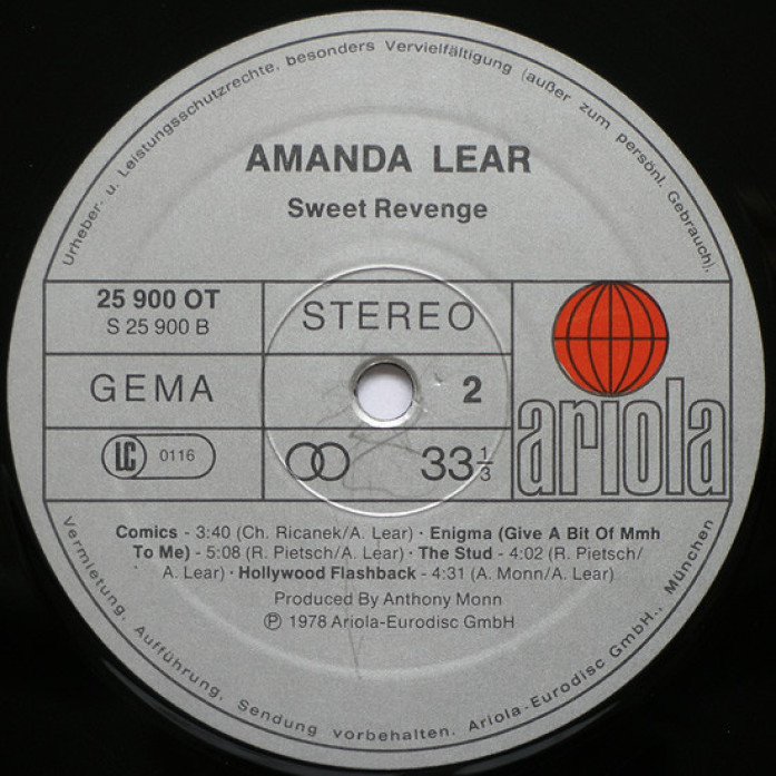 Etichete: Amanda, Lear, Sweet, Revenge, Vinyl, LP, Album, Partially Mixed, 1978, Ariola, , Ariola, Electronic, Disco, Gatefold