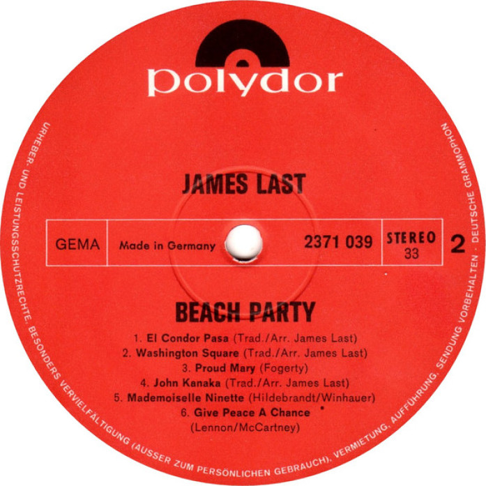 Etichete: James, Last, Beachparty, Vinyl, LP, Album, Stereo, 1970, Polydor, Pop, Pop Rock