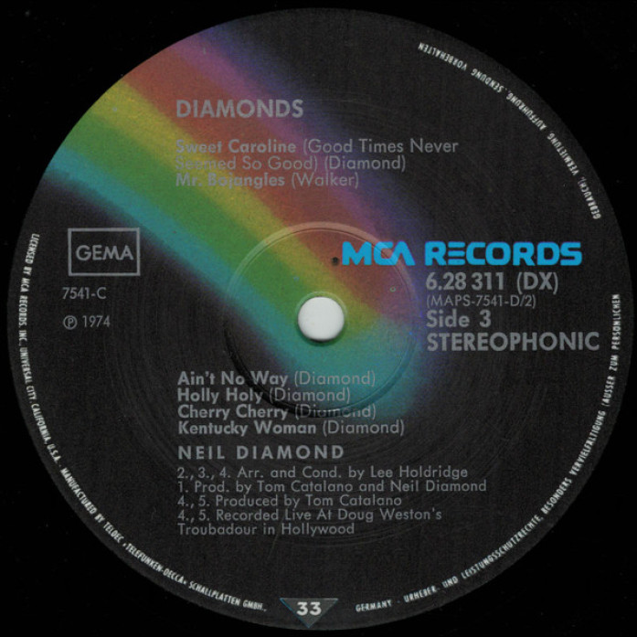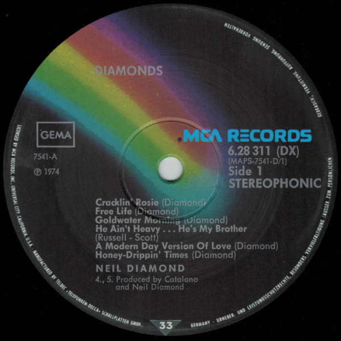 Etichete: Neil, Diamond, Diamonds, Vinyl, LP, Compilation, Stereo, 1974, MCA, Records, Rock,