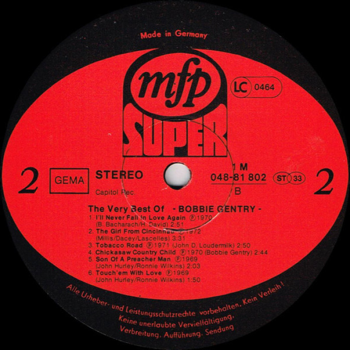 Etichete: Bobbie, Gentry, The, Very, Best, Of, Bobbie, Gentry, Vinyl, LP, Compilation, Reissue, Stereo, MFP, Super, , MFP, Super, Blues, Folk, World, & Country, Country, Folk, Delta Blues