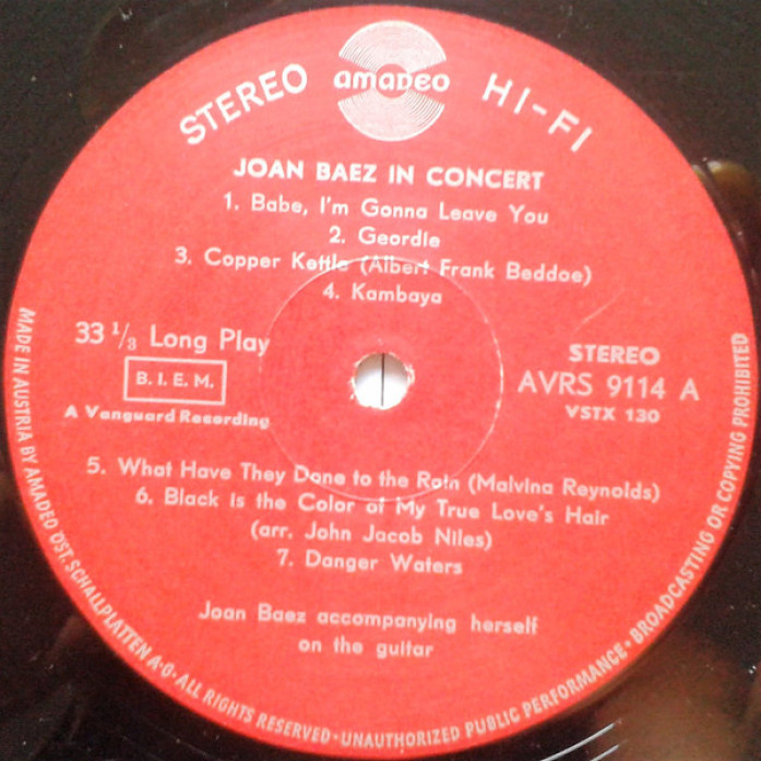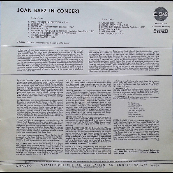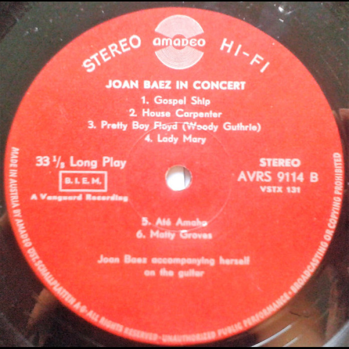 Etichete: Joan, Baez, In, Concert, Vinyl, LP, Album, Stereo, Amadeo, , Amadeo, Folk, World, & Country, Folk
