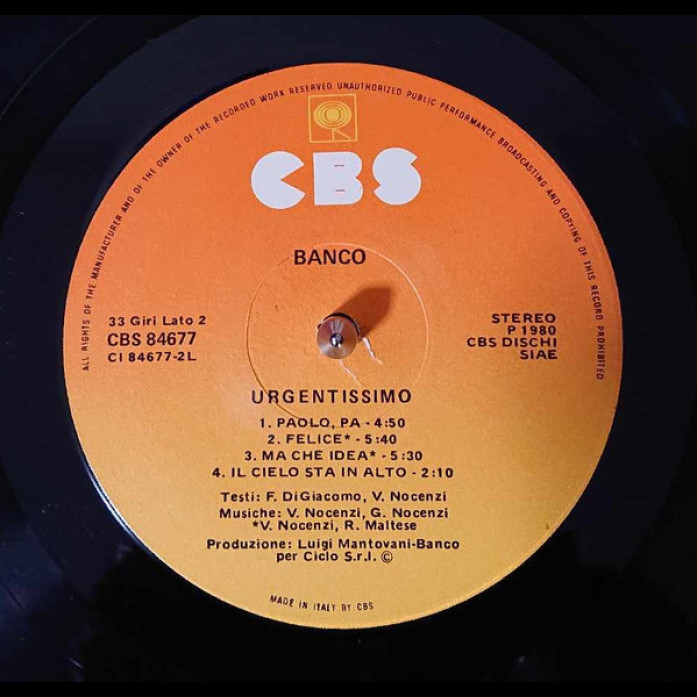 Etichete: Banco, Del, Mutuo, Soccorso, Urgentissimo, Vinyl, LP, Album, Stereo, 1980, CBS, Rock, Alternative Rock, Prog Rock