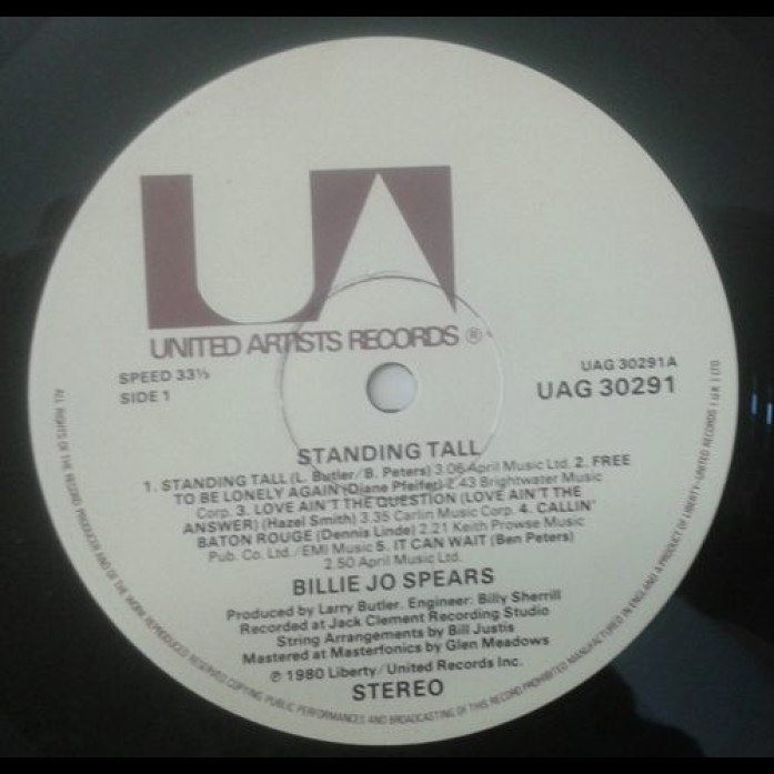 Etichete: Billie, Jo, Spears, Standing, Tall, Vinyl, LP, Album, 1980, United, Artists, Records, Pop, Folk, World, & Country, Country