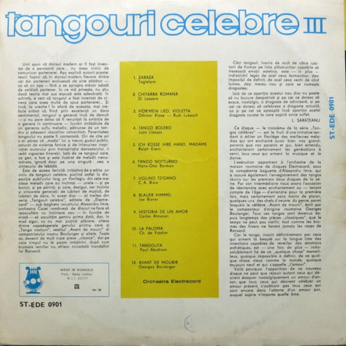 Etichete: Orchestra, Electrecord, Dirijor, :, Alexandru, Imre, Tangouri, Celebre, III, Vinyl, LP, Album, Reissue, Stereo, Electrecord, , Electrecord, Latin, Tango, Bolero